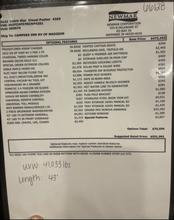 This 2022 Newmar Dutch Star is Powered by a Cummins Diesel Engine and is paired with an automatic transmission. This Class A is 43 Feet in length, has 3 Slide outs and Comfortably Sleeps 4.