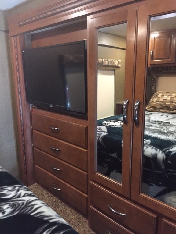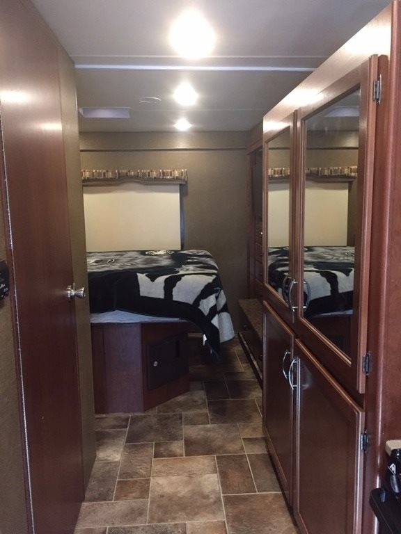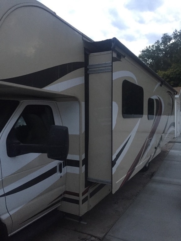 This 2016 Thor Chateau is powered by a Triton V10 Gas Engine combined with an automatic transmission. The overall length is 31 feet and comes with a Queen Size Bed, has 1 Slide Outs and sleeps 8. This is a non-pet/non-smoking RV and there has not been any accidents or water damage. This RV has only 6,156 Miles.
