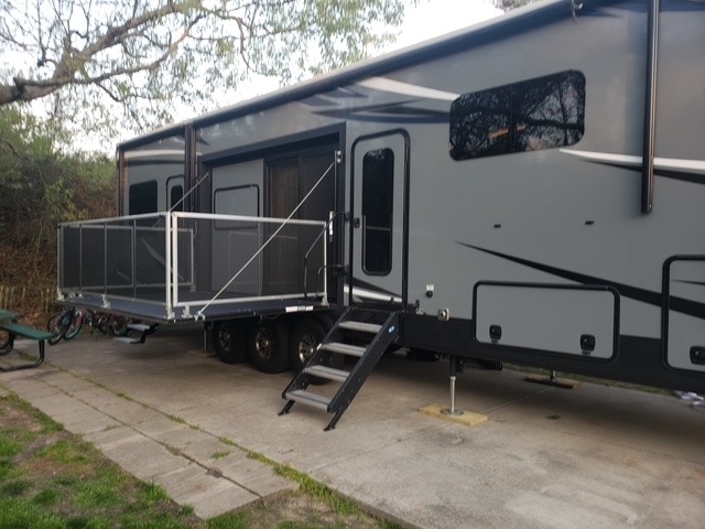 Exterior Patio, Onan Gas Generator and Room to Sleep 9.
