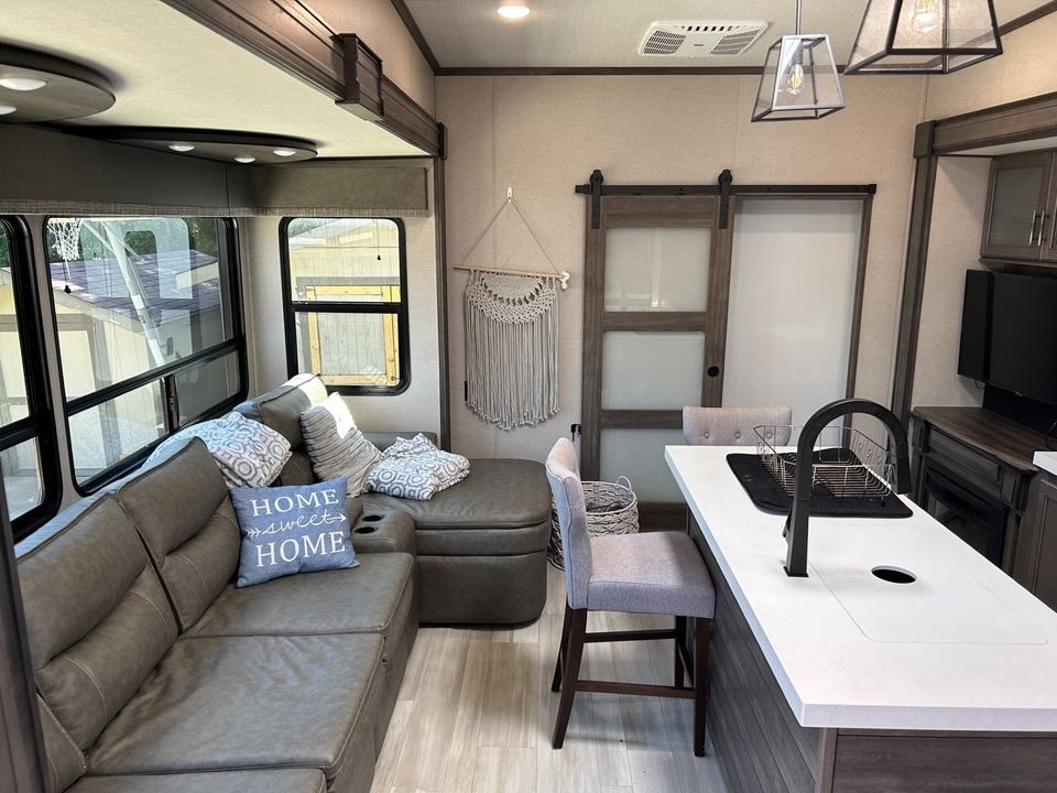 This Grand Design has an overall length of 40.33 feet and comes