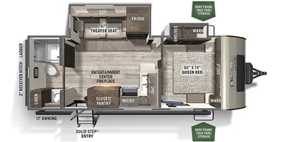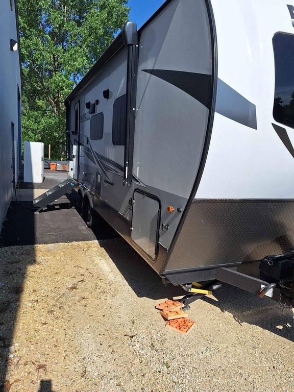 This Forest River has an overall length of 25.83 feet and comes equipped with 2 power retractable slide-outs, 1 power retractable awning, 1 A/C unit, a fireplace, solar panels and plenty of room to sleep 4. This unit has been well-maintained.