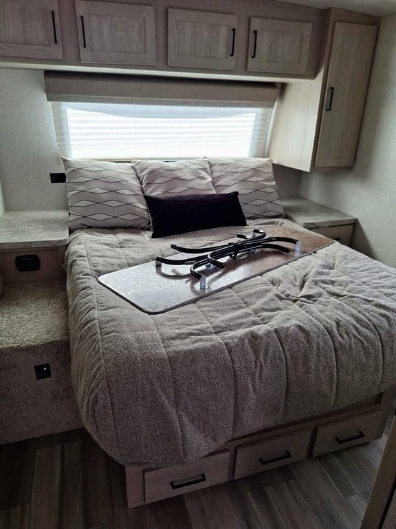 “This 2022 Forest River Flagstaff Micro Lite 25FBLS Travel Trailer is in excellent condition and has been meticulously maintained. Everything works great, ensuring a smooth and enjoyable camping experience. It offers a perfect blend of comfort and convenience, with a spacious living area, modern amenities, and high-quality construction. Whether looking to enjoy a weekend getaway or take longer trips, this travel trailer is ready to provide you with all the comforts of home on the road!”