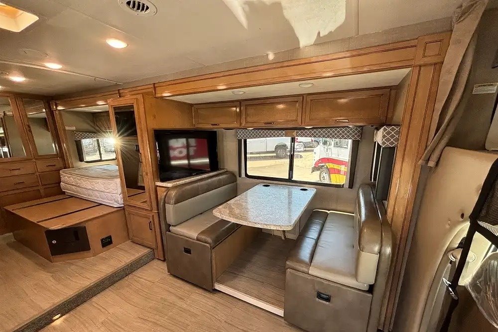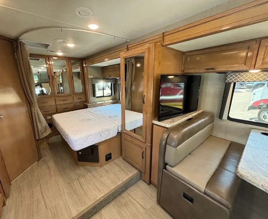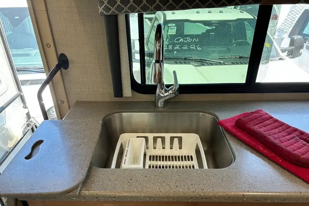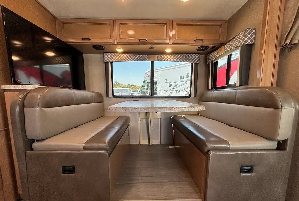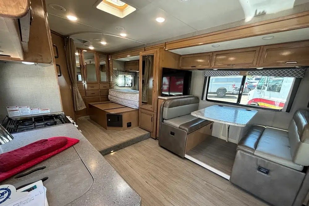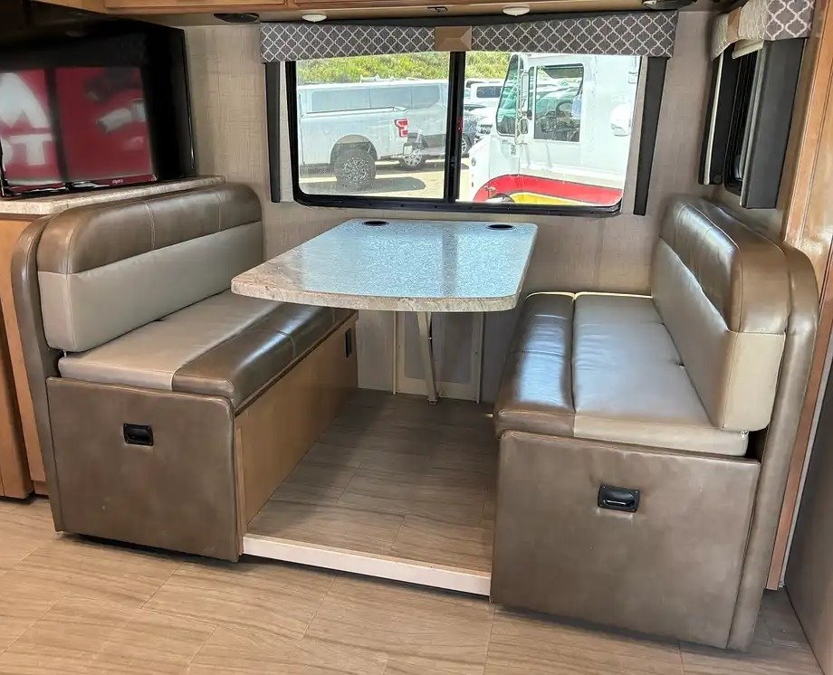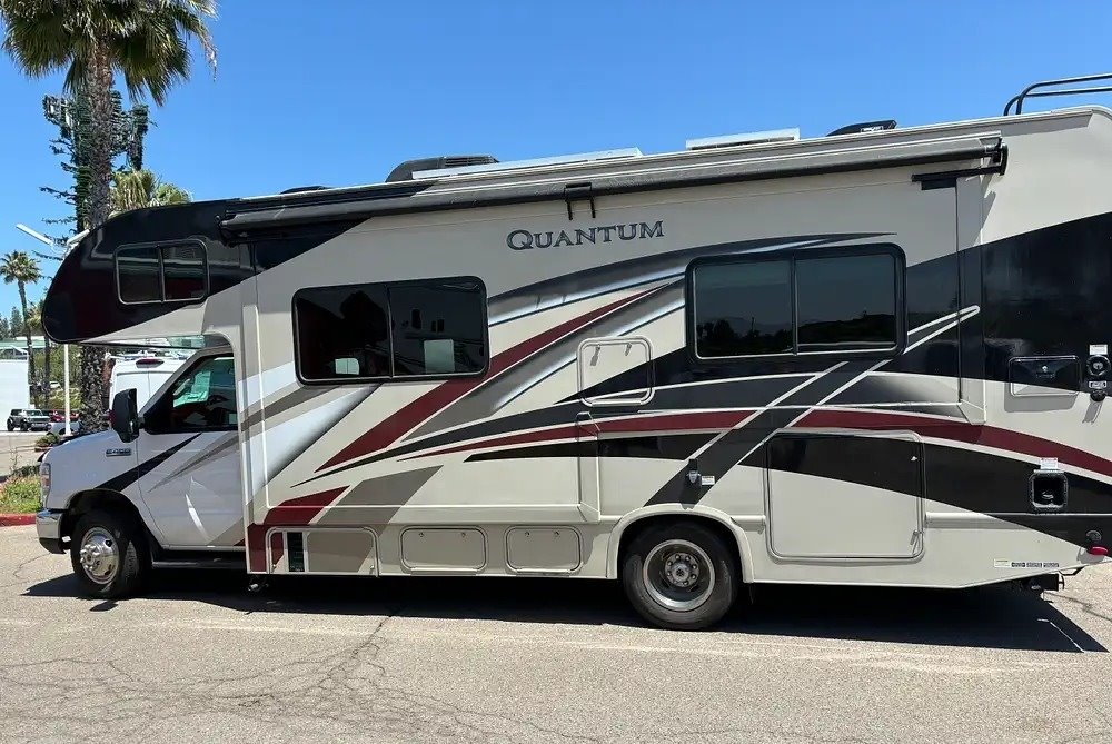 This Thor Quantum is powered by a V10 engine and a 6-speed automatic transmission with 62,000 miles. The overall length is 26.25 feet and it comes equipped with 1 power retractable slide-out, 1 power retractable awning, 1 A/C unit, and plenty of room to sleep 6. This unit has been well-maintained.