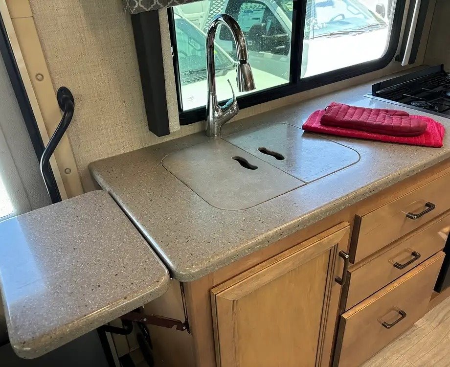 “2020 Thor Motor Coach Quantum RC25 Class C RV, a perfect blend of comfort and versatility for your travels. This well-maintained RV features a spacious layout with sleeping accommodations for up to 6, making it ideal for family adventures or road trips with friends. The modern kitchen is equipped with all the essentials, including a refrigerator, microwave, and stove, allowing you to prepare meals on the go. The living area boasts a cozy dinette, which converts into an additional sleeping space, and a cab-over bunk. With plenty of storage throughout, you can easily bring along all your necessities. The bathroom is thoughtfully designed for convenience, and the master bedroom offers a peaceful retreat at the end of the day. With low mileage and in excellent condition, this Quantum RC25 is ready for the next adventure.”