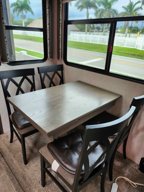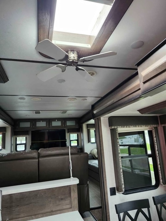 This Keystone has an overall length of 41.33 feet and comes equipped with 4 power retractable slide-outs, 1 power retractable awning, a generator, 2 A/C units, and plenty of room to sleep 8. This unit has been well-maintained.