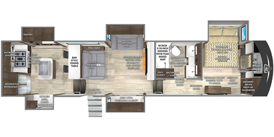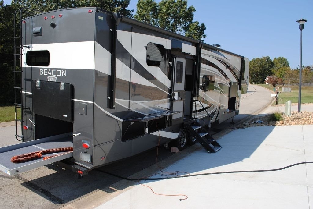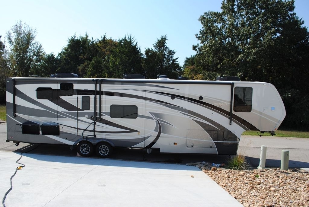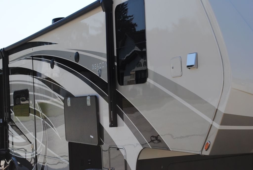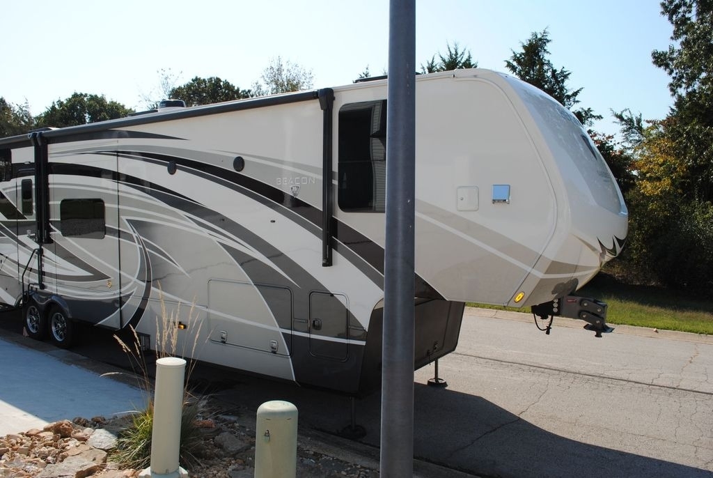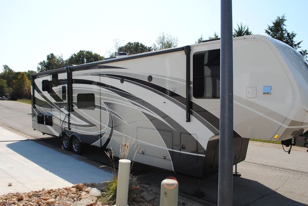 This Beacon has an overall length of 42.5 feet and comes equipped with 5 power retractable slide-outs, 2 power retractable awnings, 3 A/C units, and plenty of room to sleep 6. This unit has been well-maintained.