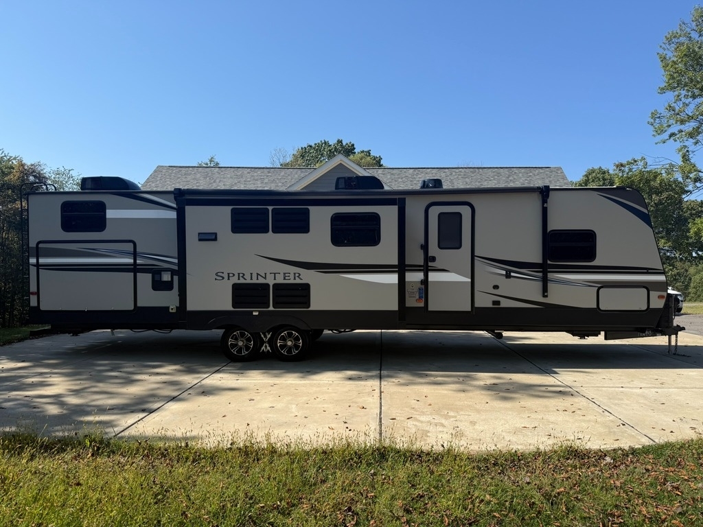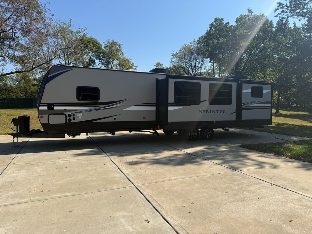 “For sale is a meticulously cared for 2020 Keystone Sprinter Limited 341BIK Travel Trailer, loaded with upgrades and barely used. This trailer has only been taken out 7 or 8 times and has been garage-kept its entire life, preserving its like-new condition. All TVs have been upgraded with built-in Roku for easy streaming and entertainment on the go. Fresh maintenance was performed on the water heater in July to ensure everything is running smoothly. Safety has also been a priority, with all CO2 detectors recently replaced. Riding on a set of new Goodyear Endurance tires installed in 2024 and equipped with an anti-sway bar, this trailer tows with confidence and stability. For anyone looking for a clean, ready-to-go rig that’s been gently used and thoughtfully maintained, this Sprinter Limited is it.”