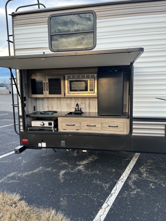 Outside Kitchen with Mini Fridge and Gas Griddle