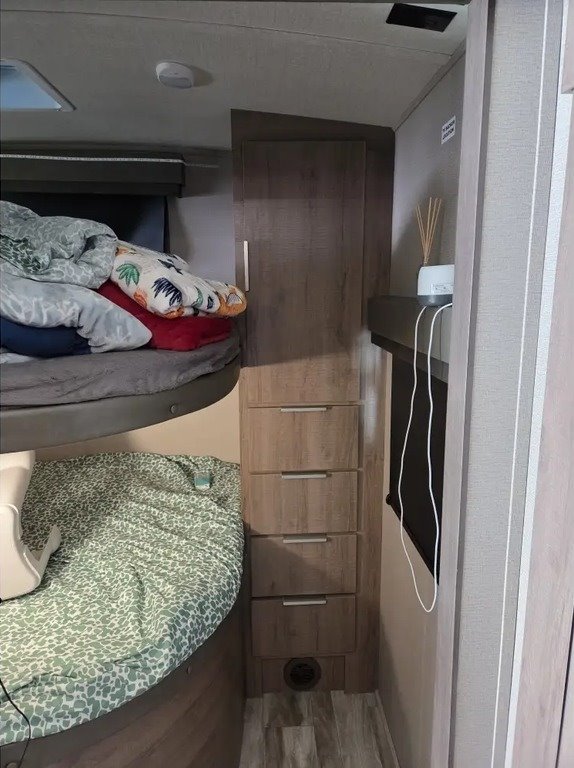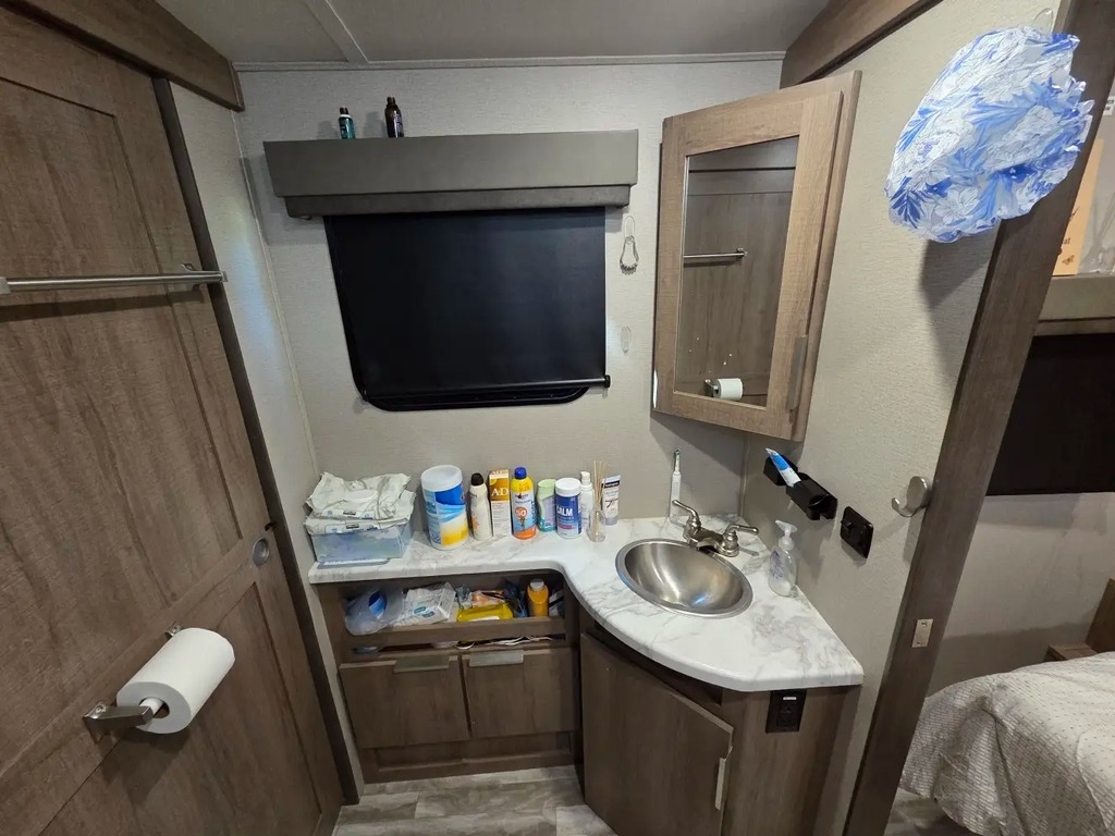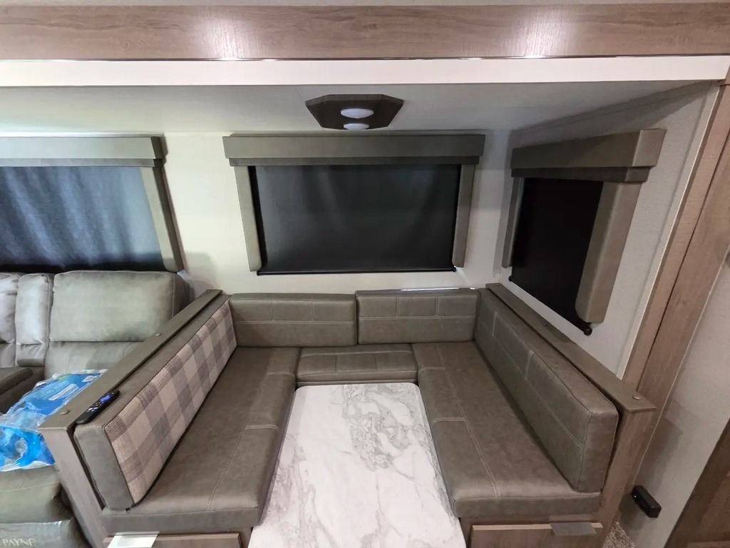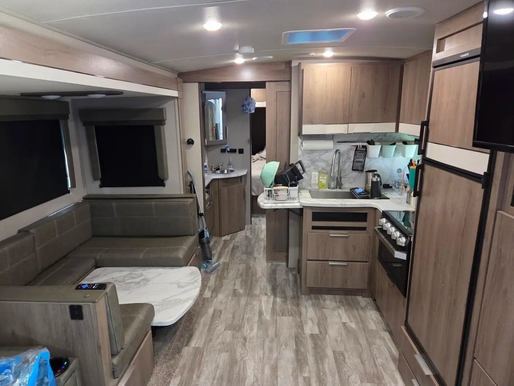 This Grand Design has an overall length of 33.92 feet and comes equipped with 1 power-retractable slide-out, a 21-foot power awning, 1 A/C unit, a bunkhouse, an outdoor kitchen, and room to sleep up to 8. This unit has been well-maintained and has 1 year remaining on the transferrable warranty.