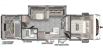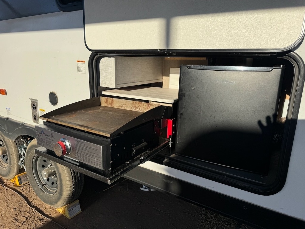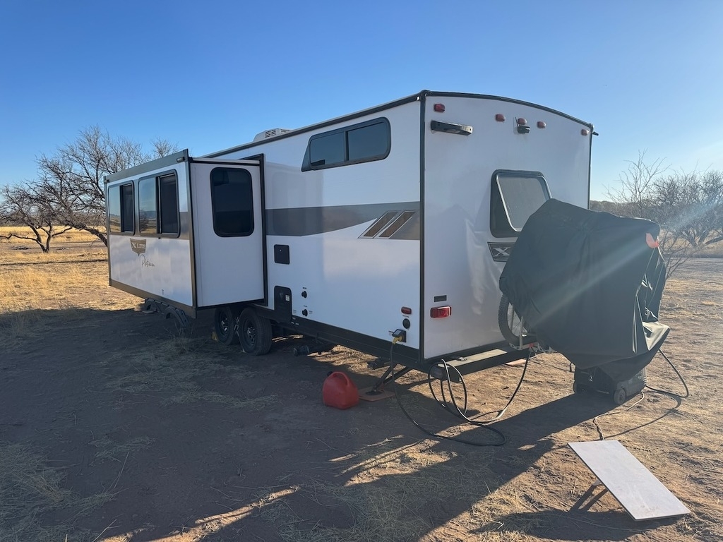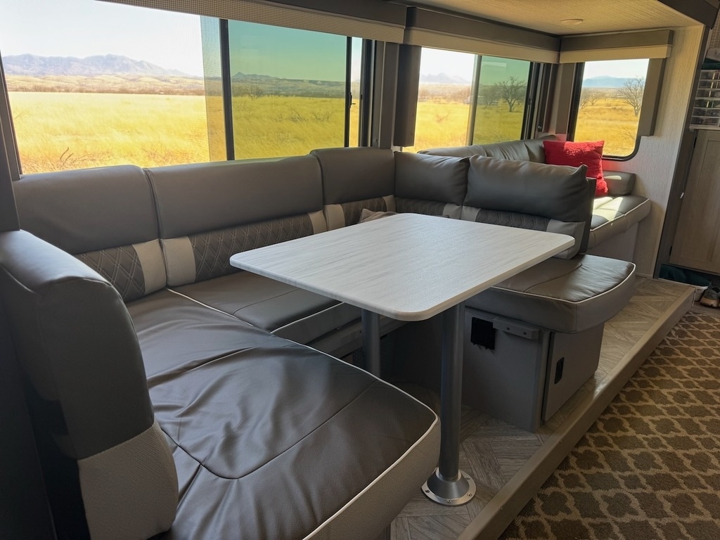 This Forest River has an overall length of 33.58ft and comes equipped with 1 slide out, 16ft awning, A/C, and room to sleep 10.