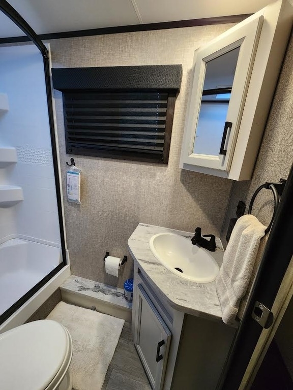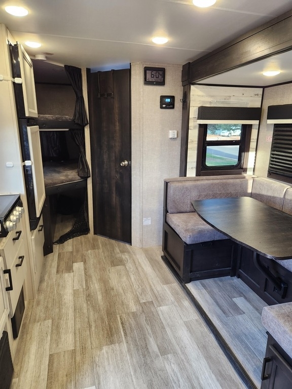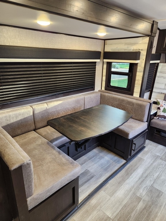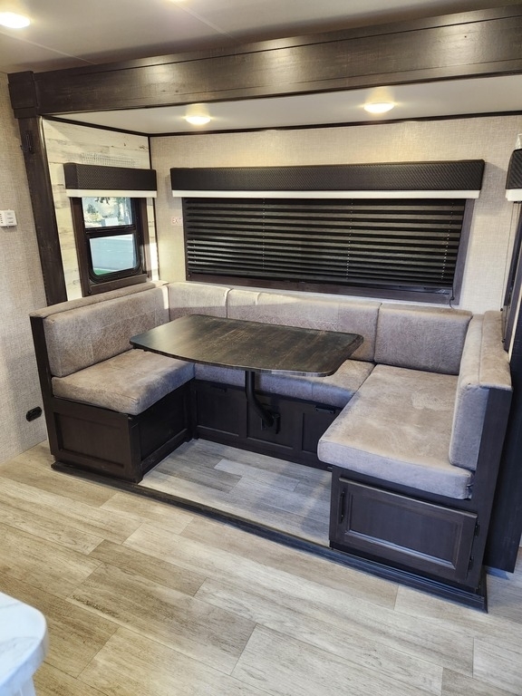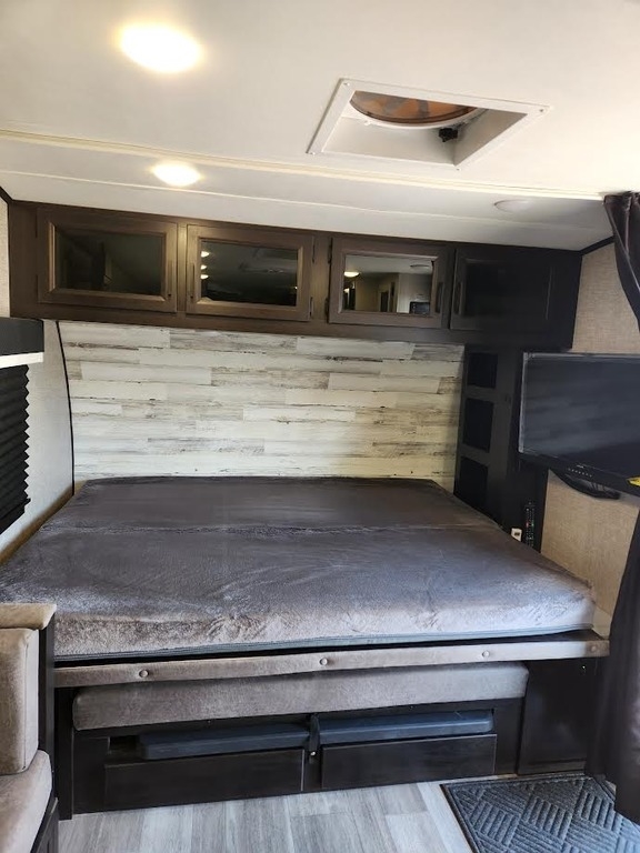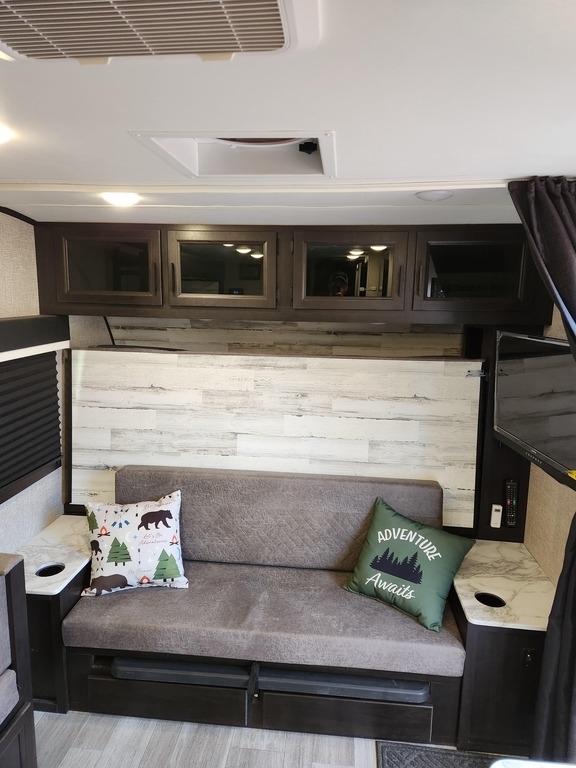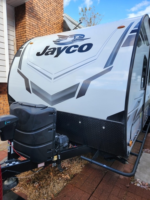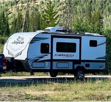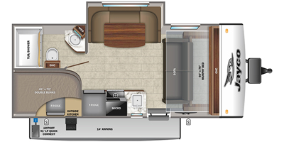 This Jayco has an overall length of 23.17ft and comes equipped with the Jay Pro Package, 1 Slide out, 14ft Power Awning, AC, and Room to sleep 7.