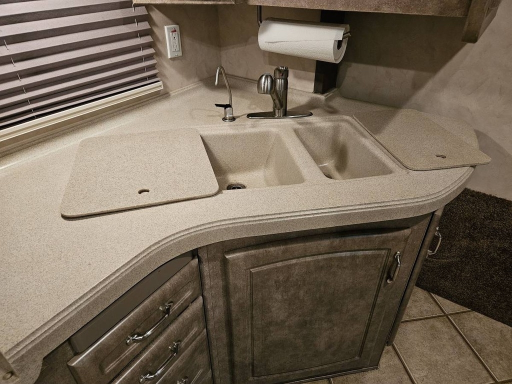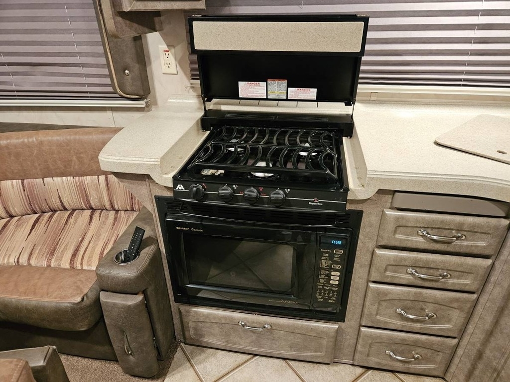 equipped with 1 power retractable slide-out, 1 power retractable patio awning,