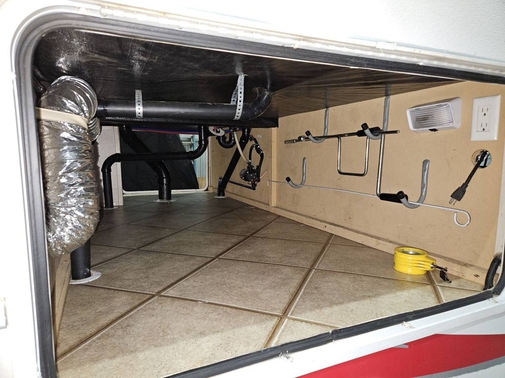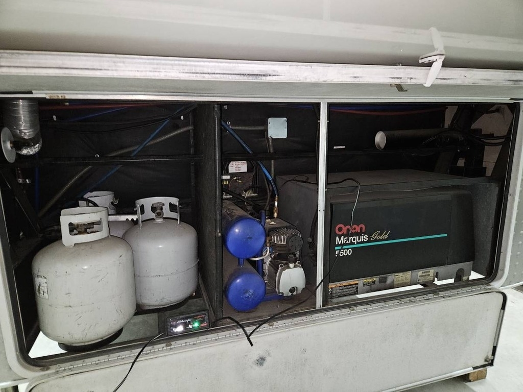a generator, an onboard air compressor, a 12-foot garage, and plenty of room to