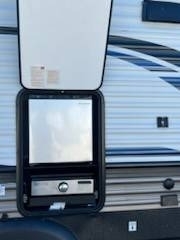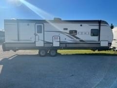 comes equipped with two slide outs, a power patio awning, an air conditioning
