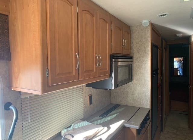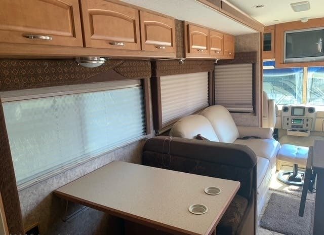 “Everything you need for the perfect RV trip is packed into this 2007 Itasca. The sleep capacity allows you to bring up to 6 along on your travels in this rig. With two slides, you’ll have the perfect amount of room to make this rig feel like home. Entertain or cook up a cozy meal just for you in this RV kitchen and keep a comfortable temperature inside your rig with the A/C. The exterior features, such as the awning, make camping a breeze. This is a very solid RV with many features. The awning is only two years old and it has low mileage and good tires (size: 22.5). The wood trim is in great condition and not all marked up. The leather seat material is in good condition. The batteries were replaced in November 2022. This optional plan has a king bed in the rear instead of a queen, which is a real plus!”