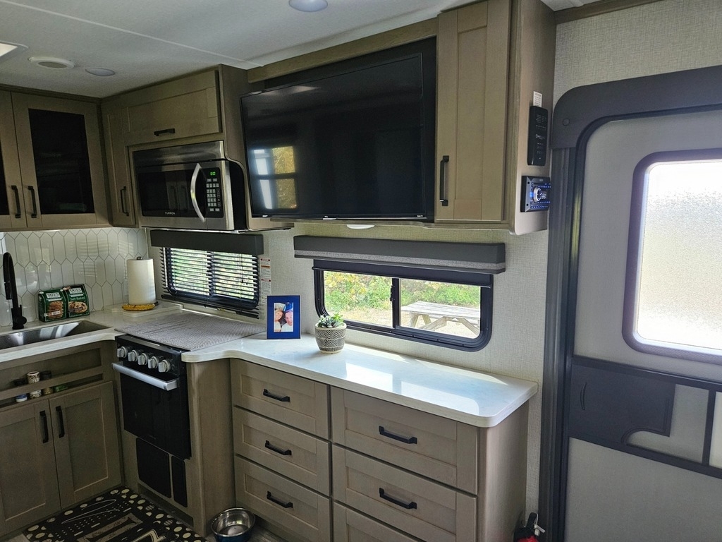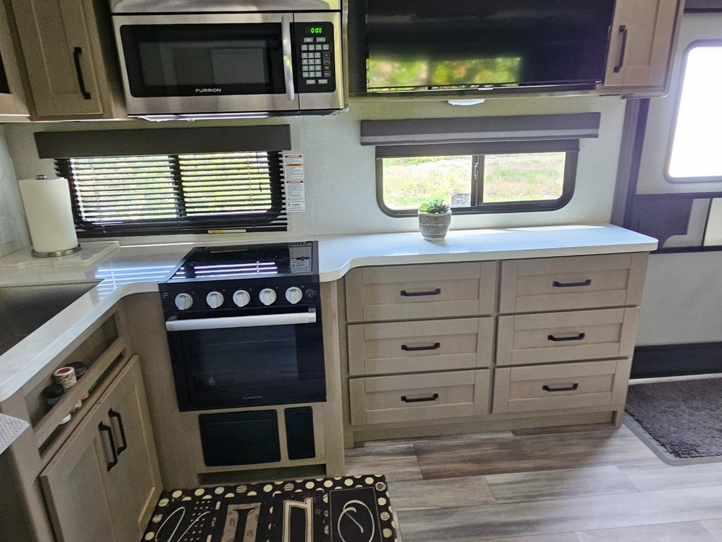 Full Kitchen With 3-Burner Stove, Oven, Microwave, Full-Size