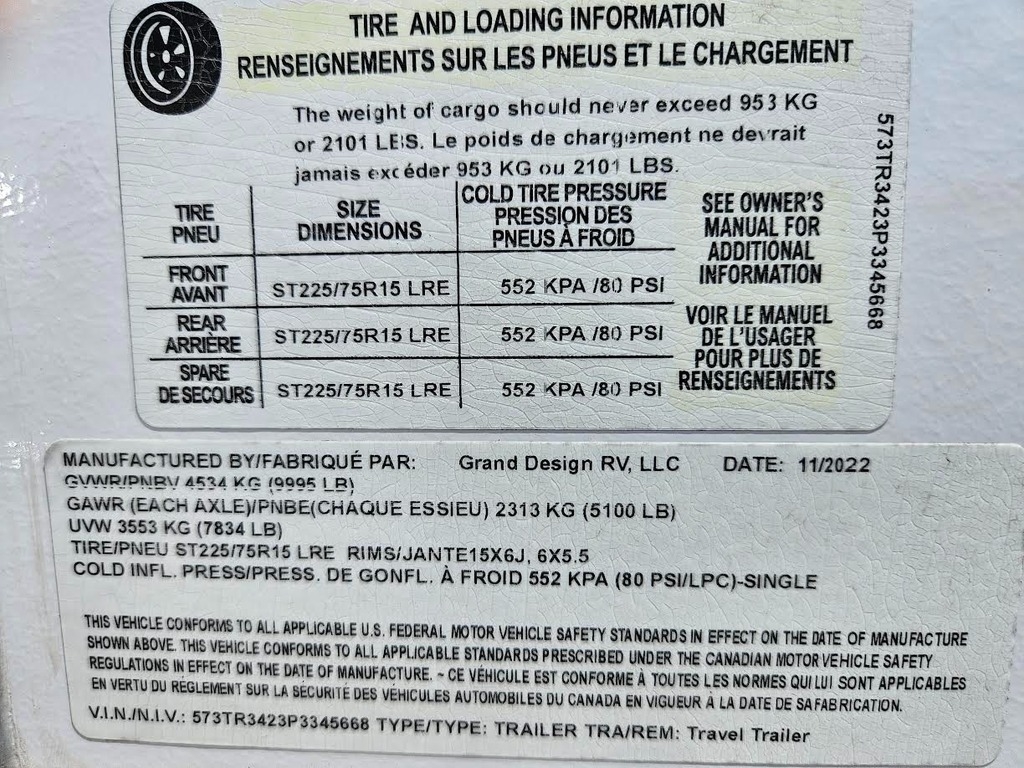 54 Gal Fresh / 86 Gal Gray / 43 Gal Black Water Capacity