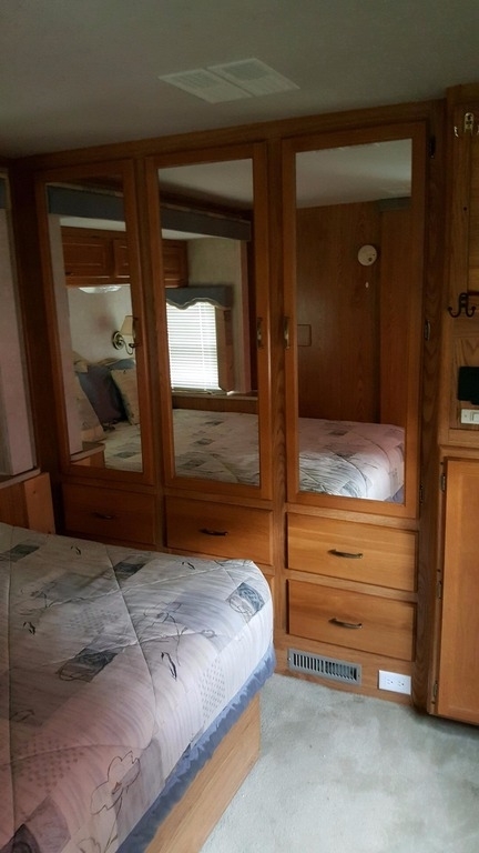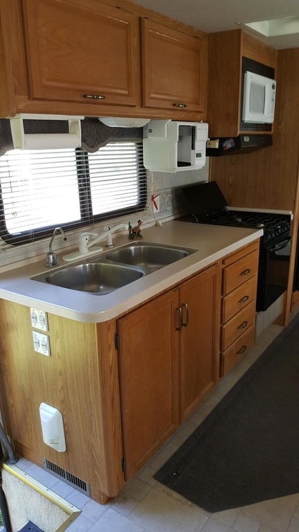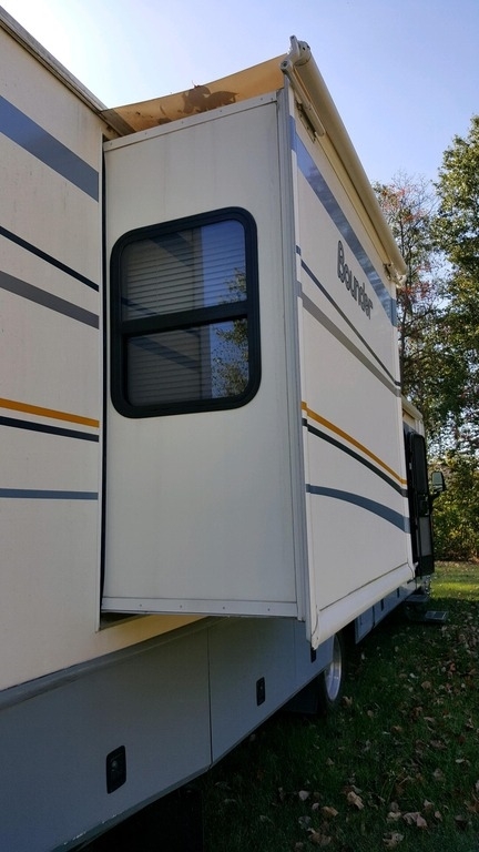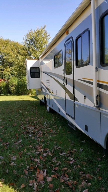 This Fleetwood is 32 foot in length and  has 69,481 miles on it.  This unit is equipped with a Vortec, V8, 8.1L,  gas engine, paired with an 5-speed automatic transmission with overdrive.   It sleeps 6 people, has 2 slides, 3 retractable awnings and has 2 A/C units.  This unit has no water damage, no pets and non-smoking.