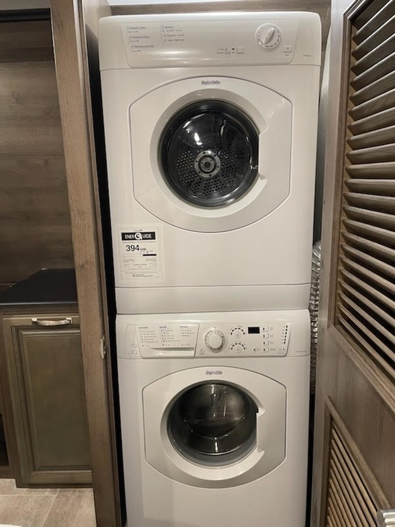 Washer and Dryer with Laundry Hamper in Closet