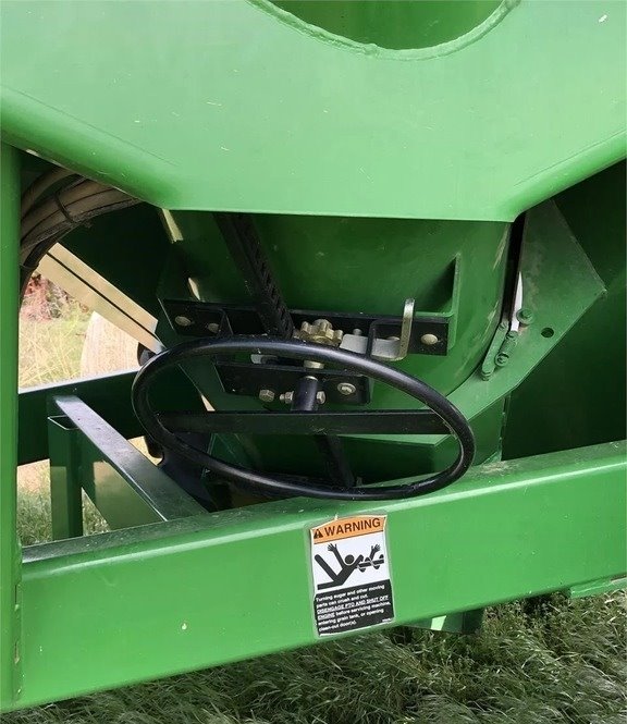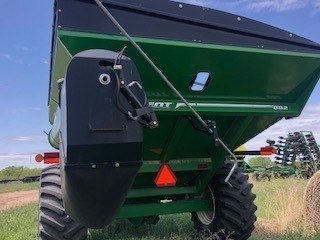 “Ready to work! Features: Scale for accurate load measurement; Lights for improved visibility; Hydraulic adjustable spout for easy operation; Roll-over tarp for weather protection; Firestone tires with 90% tread remaining. The low usage and high-quality features, along with the good condition of the tires, make this cart a valuable find for anyone in need of reliable grain-handling equipment.”