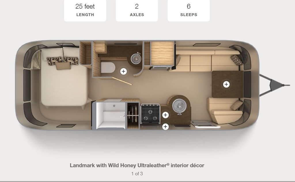 This 2019 Airstream Flying Cloud has an overall length of 25 feet and comes equipped with 1 Awning, 2 A/C units, and room for 6.