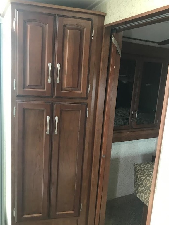 Inside the entry door, there is a control panel for the electric/gas hot water heater, the slide outs, the awning, the water pump (if not connected to city water) porch light, main lights in living area and to see the current levels in the water and wastewater tanks and the battery.