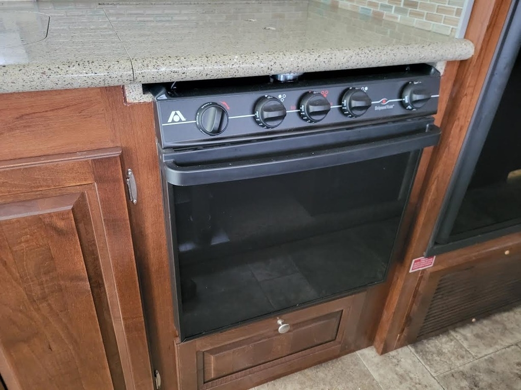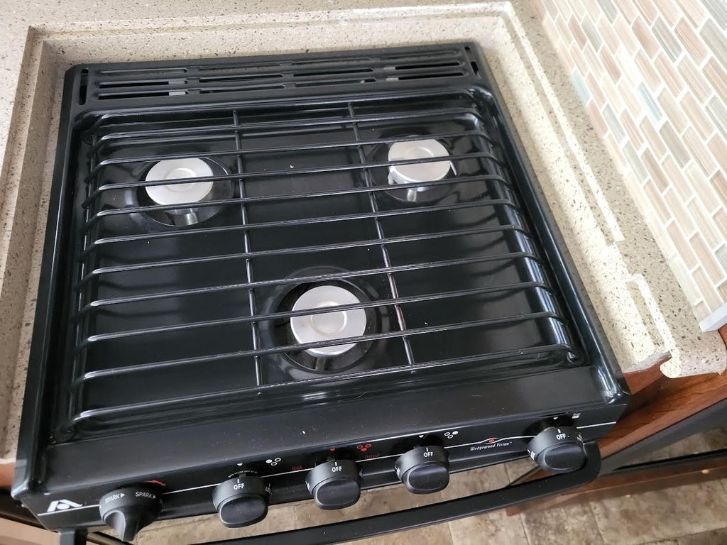 Central Kitchen With 3-Burner Stove/Oven, Microwave, Mid-Size Refrigerator (Propane/Electric), And Sink with Covers