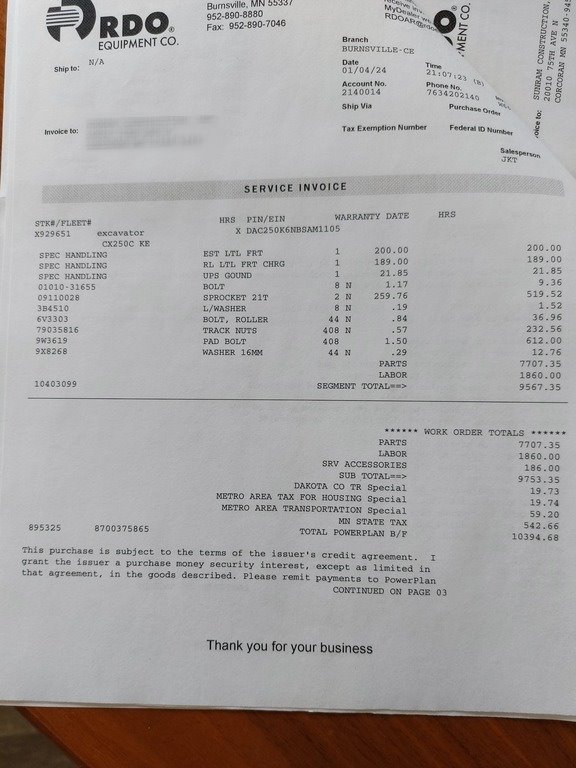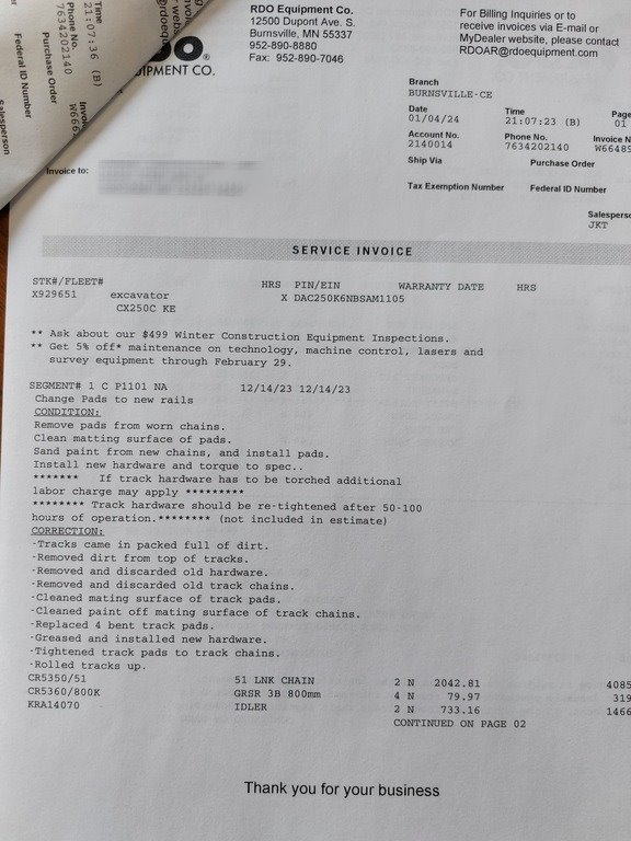 its age and hours. The undercarriage was just replaced in 2024 by RDO Equipment