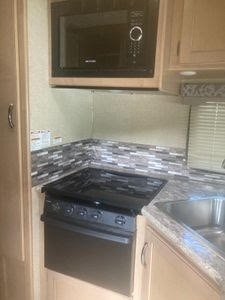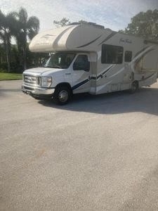 This Thor is powered by a 6.8L V10 engine and a 6-speed automatic transmission with 32,000 miles. The overall length is 27.5 feet and it comes equipped with 1 power retractable slide-out, 1 power retractable awning, 1 A/C unit, and plenty of room to sleep 7. This unit has been well-maintained.
