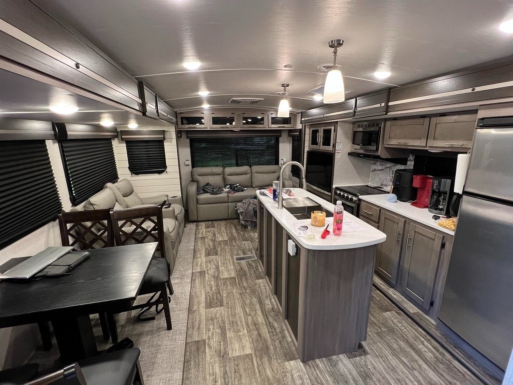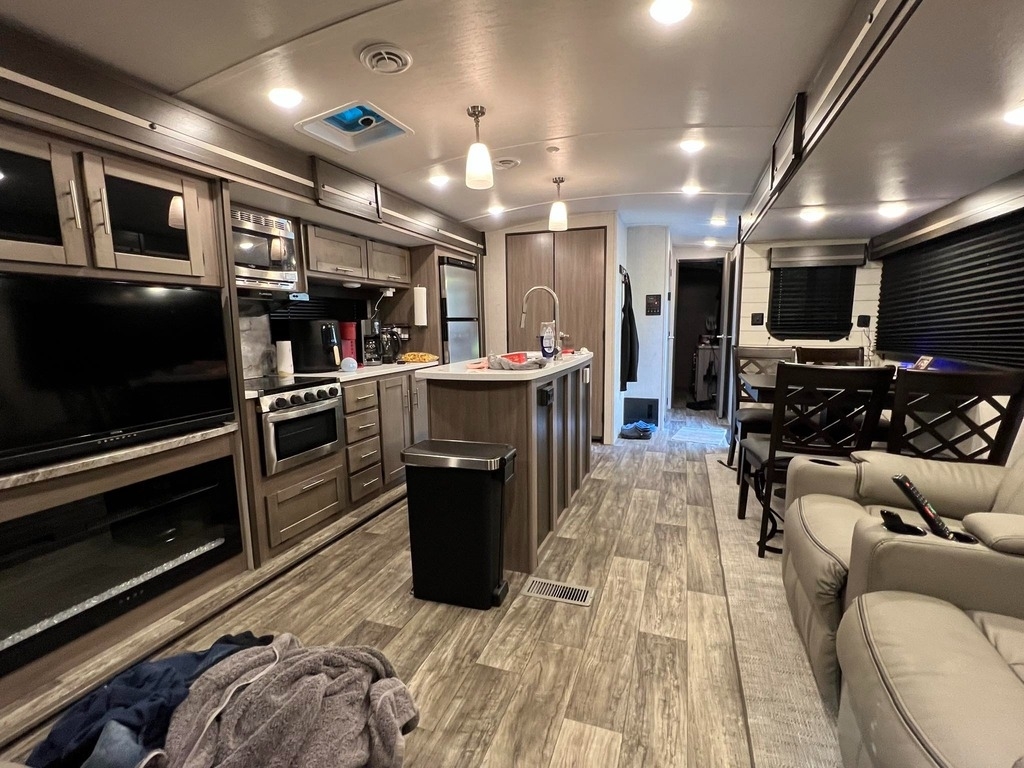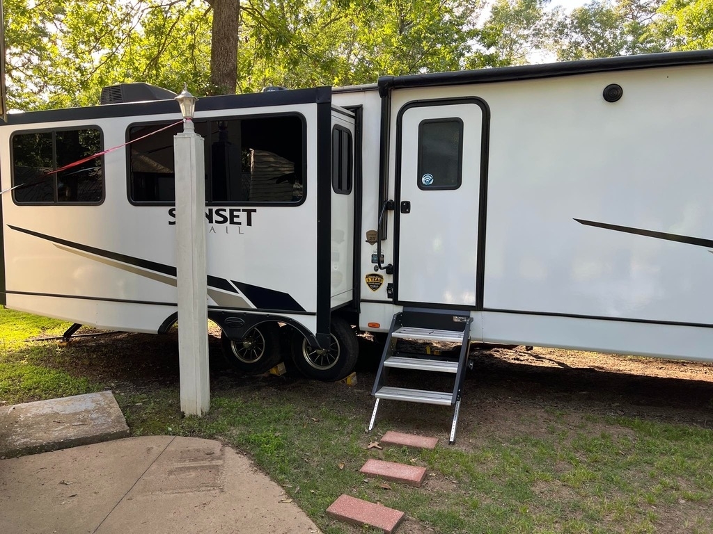 This CrossRoads has an overall length of 37 feet and comes equipped with 3 power retractable slide-outs, 2 power retractable awnings, 2 A/C units, a fireplace, a stackable washer & dryer, and room to sleep 4. This unit has been well-maintained.