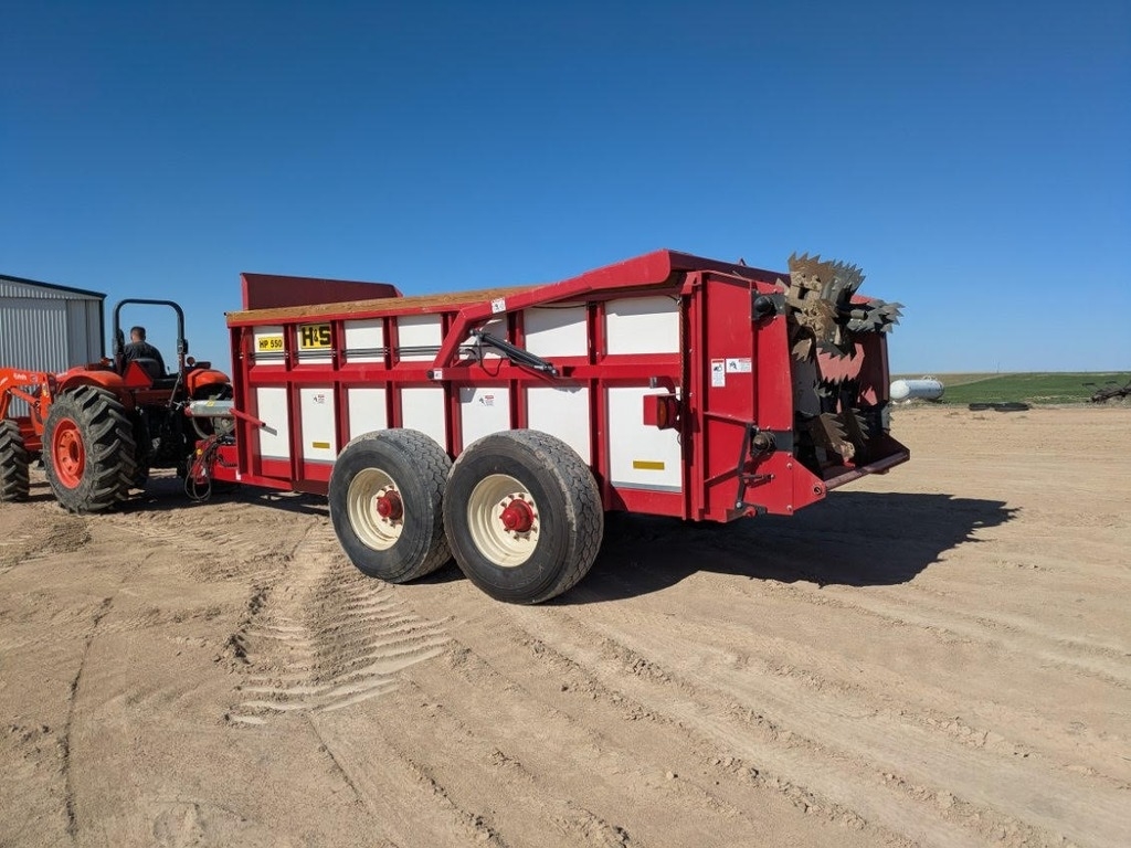 HP550 Spreader in excellent condition. This 550-bushel unit features horizontal