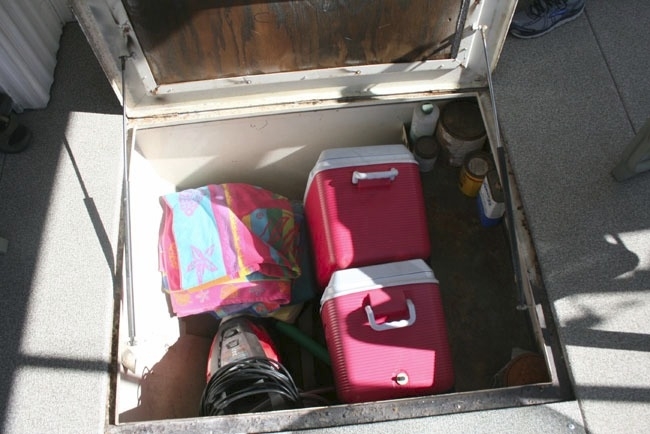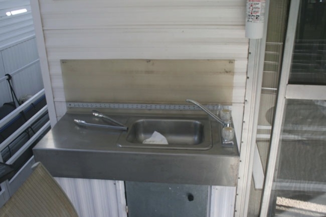 There is a large deck that has brand new decking, lots of storage space and exterior sink.