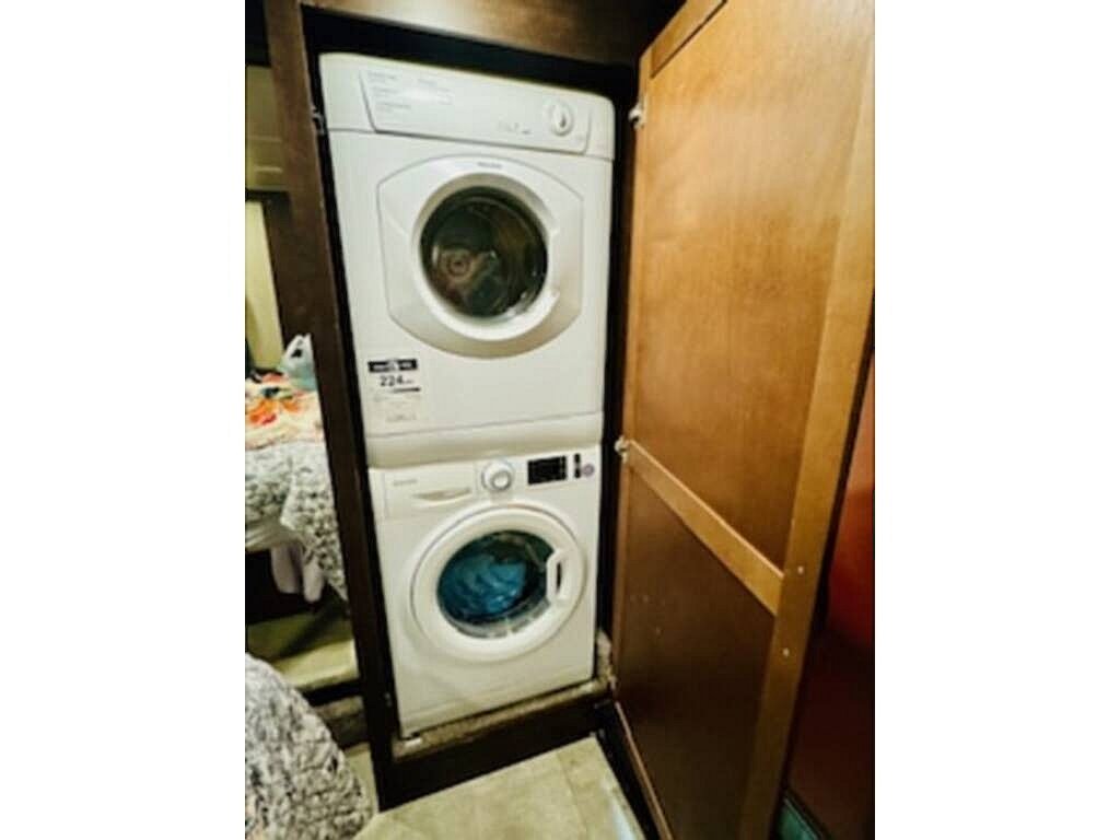 comes equipped with a stackable washer/dryer for ultimate convenience. Inside, enjoy