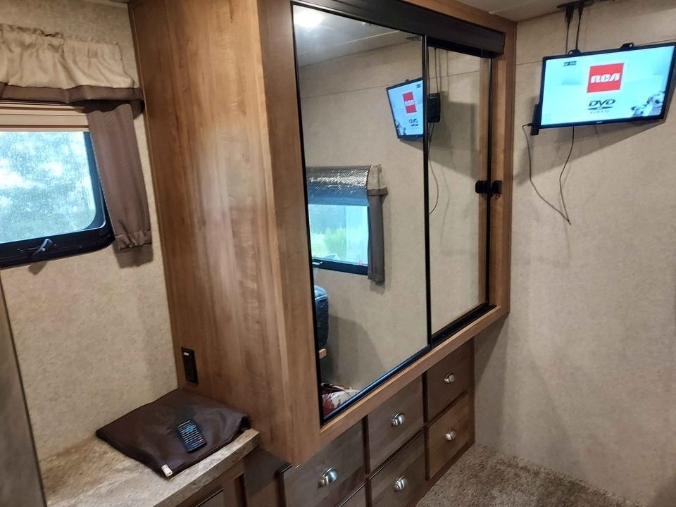 This Forest River has an overall length of 35ft and comes equipped with 2 Slide Outs, 1 Awning, 1 AC Units and Room to Sleep 9.