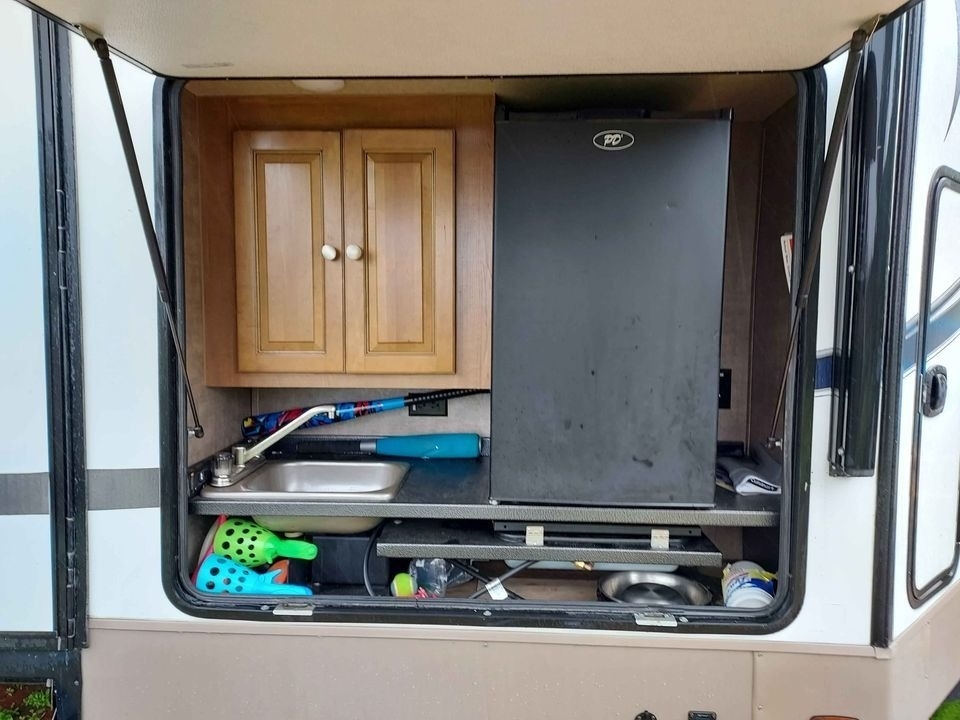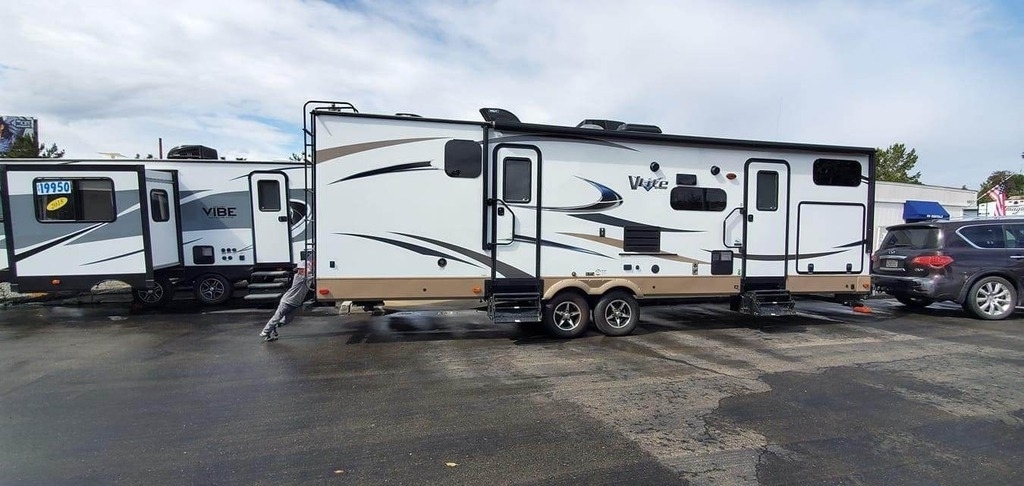 Owners Comments: “CALIFORNIA DREAMIN. If you're looking for a hidden gem, look no further. 2 owners, barely used, 35 Ft Flagstaff V-lite Trailer, great condition, many extras, the only thing missing is your family fun. Oversized fridge, bunkhouse model, sleeps 7 to 9 people. Full equipped with exterior kitchen and entertainment center, electric awning, electric tongue jack, LED patio light bar, oversized propane tanks, macerator, electric leveling jacks, 4 flat screens, 2 slides, plenty of room, and much more. This unit has everything you need to hit the road. Must sell for military reassignment.”
