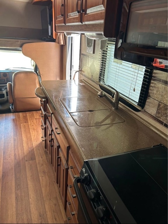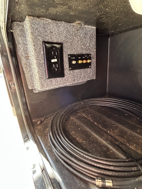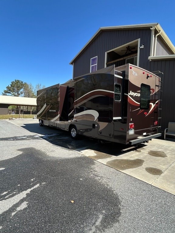 slide-outs, 1 power retractable awning, 1 A/C unit, an exterior mount for grill,