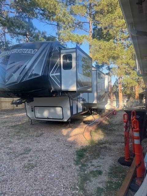 “2019 Grand Design Momentum 376TH Fifth Wheel Toy Hauler, designed for adventure enthusiasts who crave both comfort and functionality. This spacious toy hauler features a generous garage area, perfect for storing your toys, whether it’s bikes, ATVs, or motorcycles. The open living space includes a modern kitchen equipped with high-quality appliances, ample counter space, and a large dining area for family meals. The stylish living room offers plush seating and a cozy atmosphere, ideal for relaxing after a day of exploring. With multiple sleeping options, including a comfortable master bedroom, this RV accommodates friends and family with ease. The bathroom features a spacious shower and plenty of storage. Additional highlights include a power awning for outdoor enjoyment, exterior entertainment and kitchen, durable construction for extended travels, and luxurious finishes throughout. Whether hitting the trails or enjoying a weekend getaway, this Grand Design Momentum 376TH is ready to elevate any adventure.”