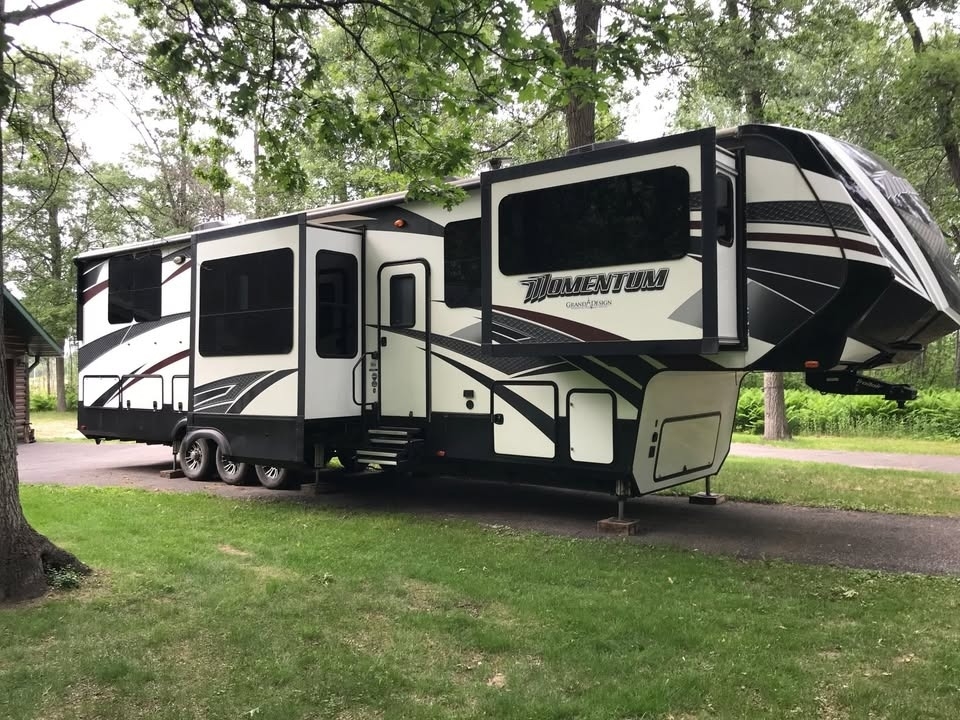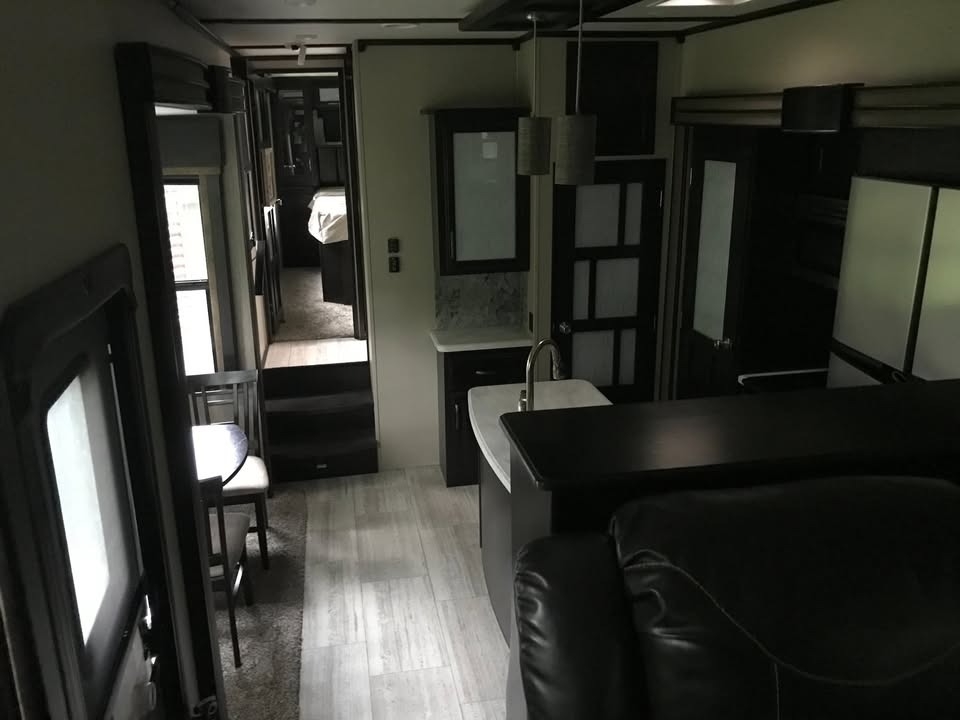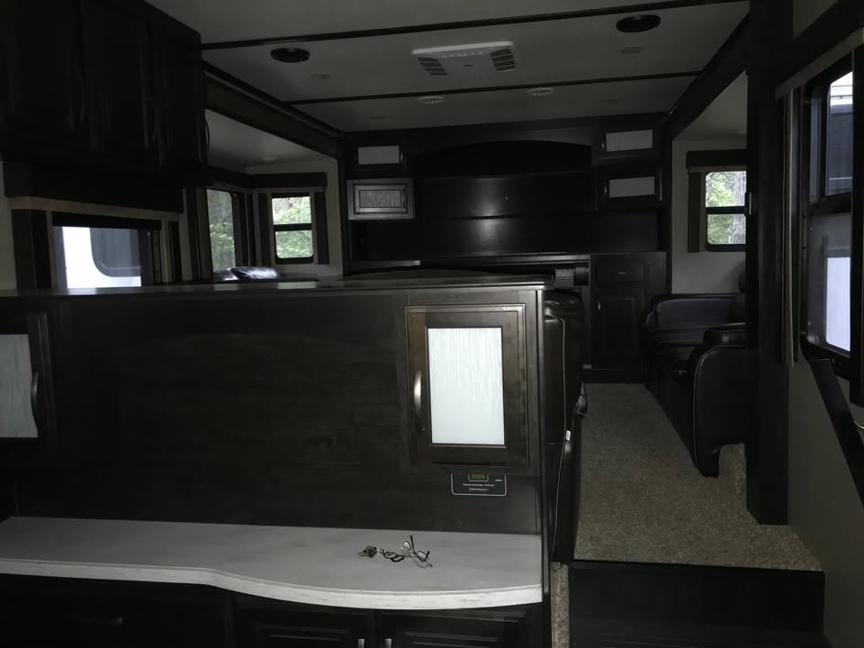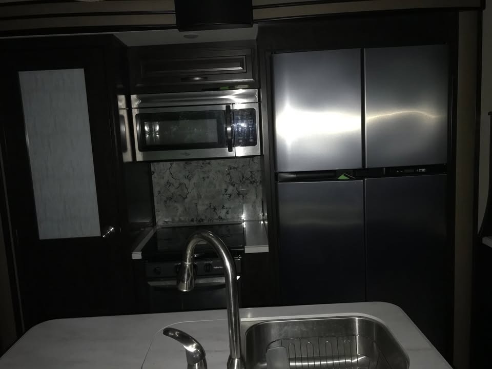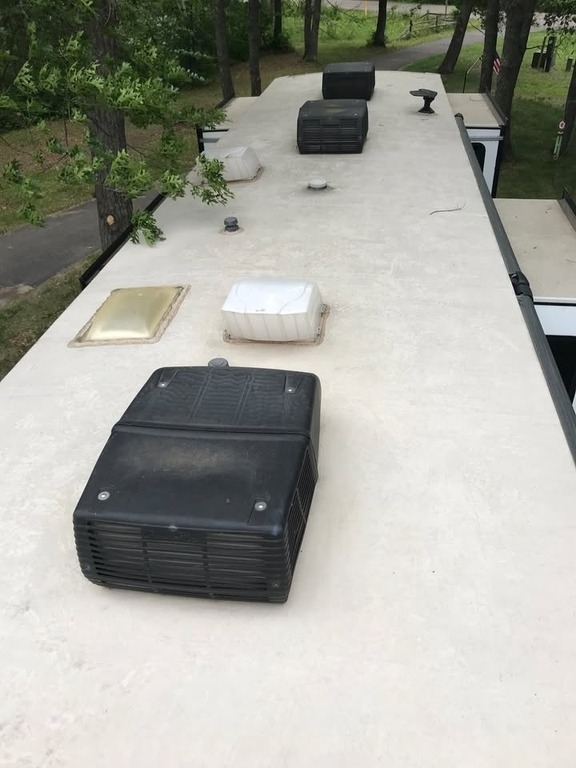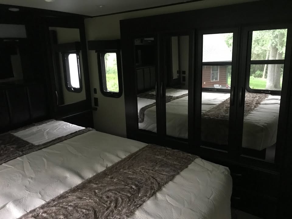 slide-outs, 2 power retractable awnings, 3 A/C units, a generator, a 9.25-foot