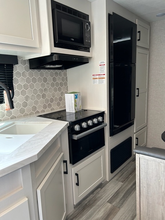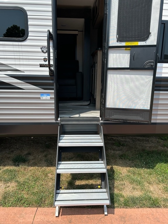 power retractable awning, 1 A/C unit, bunk beds, an outdoor kitchen, and plenty