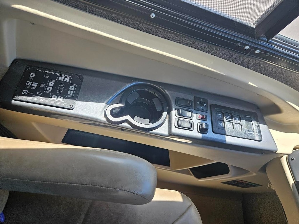 This Tiffin is powered by a 6.7L I6 diesel engine and a 6-speed automatic transmission with 34,000 miles. The overall length is 35.17 feet and it comes equipped with 4 power retractable slide-outs, 1 power retractable awning, 2 A/C units, a fireplace, an outdoor entertainment system, and room to sleep up to 4. This unit has been well-maintained.