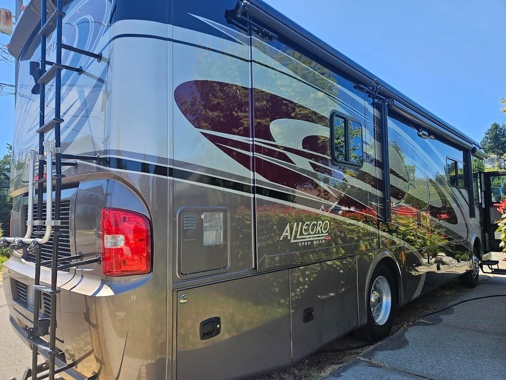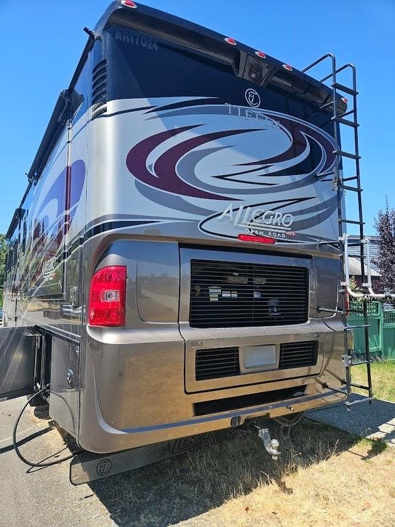 “This 2017 Tiffin Allegro RED 33AA Class A Diesel has been well cared for and is ready for your next adventure. It comes equipped with a water softener, wheel covers, and two Roku devices—one for the living room TV and one for the bedroom—so you’re set up for comfort and entertainment right away. The coach is in great condition overall, with solid fiberglass and just a cosmetic paint bubble visible over a previous fiberglass repair (photo available). The fiberglass itself is in good shape and structurally sound. This is a reliable and comfortable diesel pusher, perfect for extended travel or full-time RV living.”