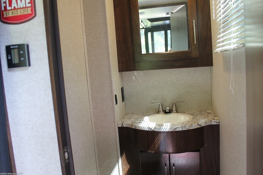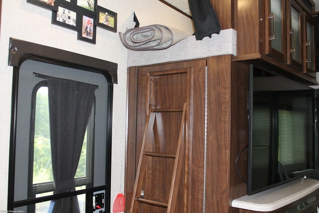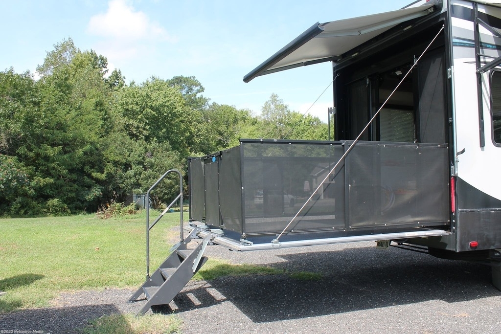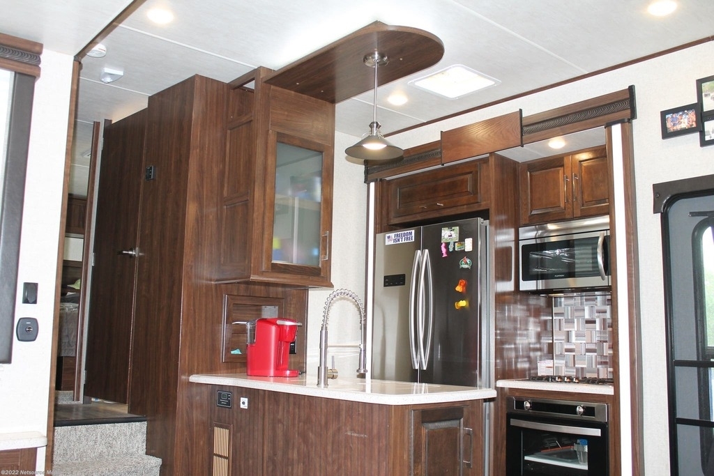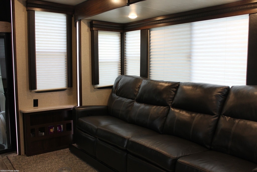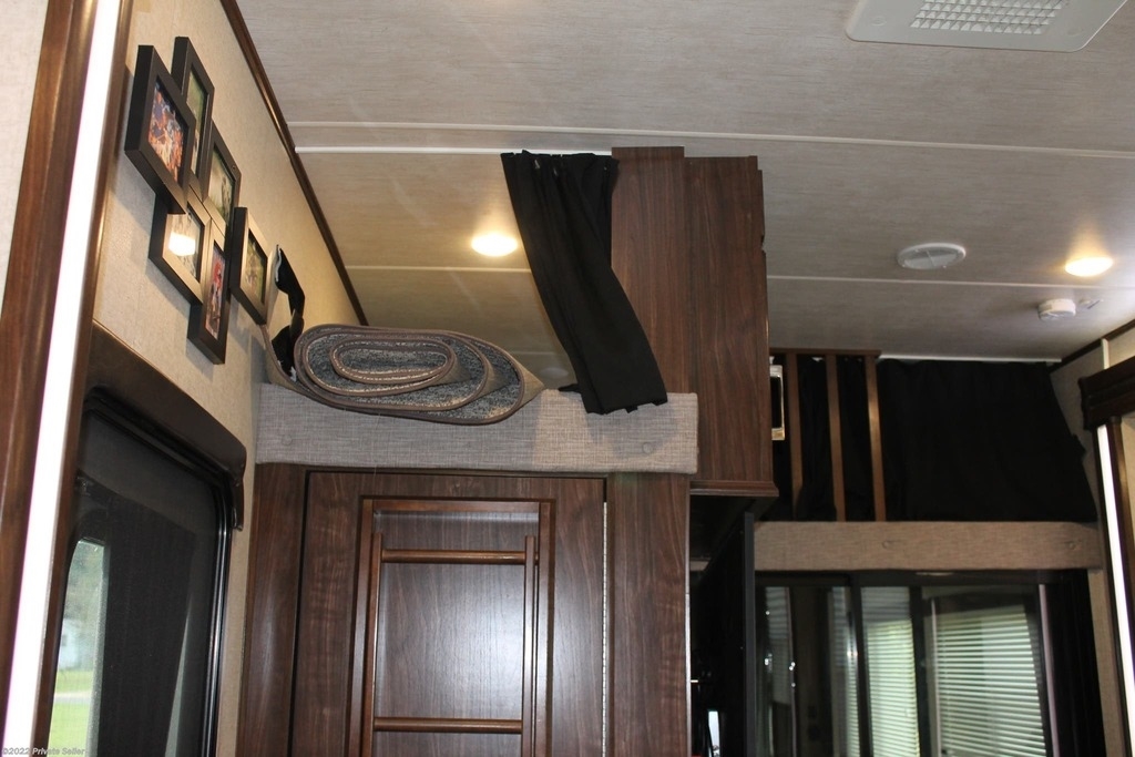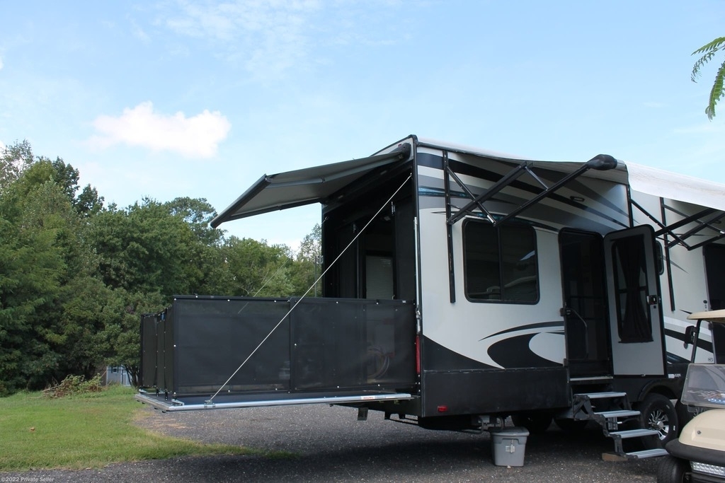 This 2017 Keystone has an overall length of 39.17 ft (10’ Garage) and Comes Equipped with 3 Slide Outs, 2 Awnings, 3 A/C Units, 1.5 Bathrooms, a 5K Watt Generator, with Room to Sleep 7.