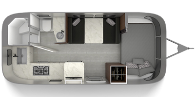 This Airstream has an overall length of 21 feet and comes equipped