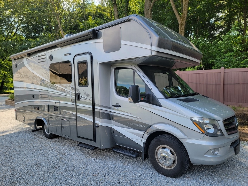 “2019 Dynamax Isata Series 3 Class B+ RV, a perfect blend of luxury, comfort, and practicality. This RV features a sleek, aerodynamic design and a spacious interior, making it ideal for both weekend getaways and extended road trips. The Isata Series 3 offers a fully-equipped kitchen with high-end appliances, a comfortable dinette, and a plush sleeping area that ensures restful nights on the road. Its user-friendly technology includes an advanced infotainment system and intuitive controls, designed to enhance your travel experience. Powered by a robust diesel engine, this RV delivers impressive performance and fuel efficiency, making your journeys both enjoyable and economical. The RV has been recently serviced and a battery has been replaced. The interior boasts elegant finishes, ample storage, and modern conveniences, while the exterior features an attractive, aerodynamic profile. Whether exploring new destinations or relaxing at a scenic spot, this 2019 Dynamax Isata Series 3 provides all the comforts of home in a compact, stylish package.”