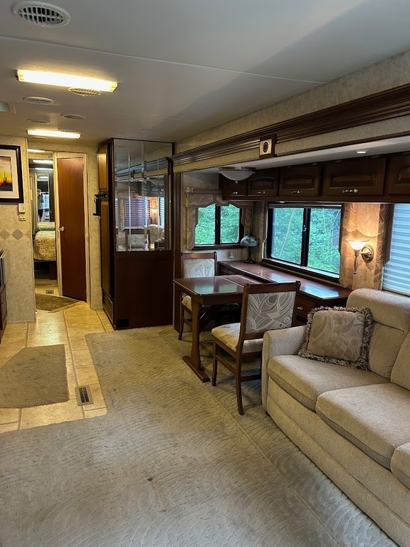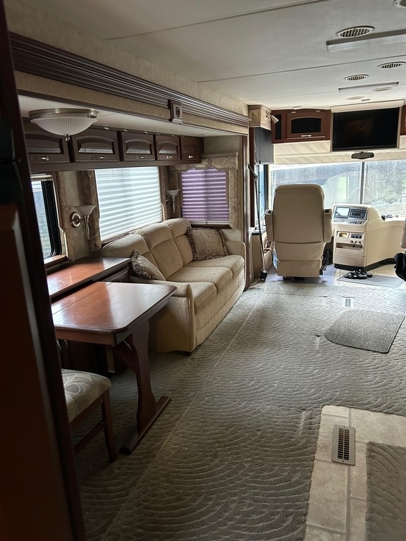 “For sale is a 2005 Newmar Kountry Star 3910 Class A Diesel  motorhome, well-maintained and thoughtfully upgraded for comfortable extended  travel. This coach includes several Mountain Aire upgrades, such as upgraded  window sills and a combination computer desk/slideout table, adding both quality  and functionality. It features dual A/C units with heat pumps, with the front  unit replaced about 5 years ago, and a single motorized front sunshade for  added comfort while relaxing. Inside, there are upgraded flat-screen TVs, a central  vacuum system, and a 10-gallon water heater, along with an ice maker for added  convenience. The coach also includes full pass-through storage, heated bays and  holding tanks, and reliable batteries (3 years old). The tires are 6 years old  and still in good condition. The dash A/C currently needs a recharge. This  Kountry Star offers solid Newmar construction, comfort, and high-end features  typically found in more expensive coaches. It’s a great value for anyone  looking for a dependable diesel pusher with quality upgrades and plenty of life  left.”