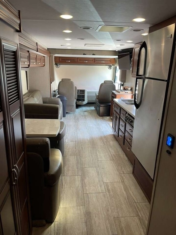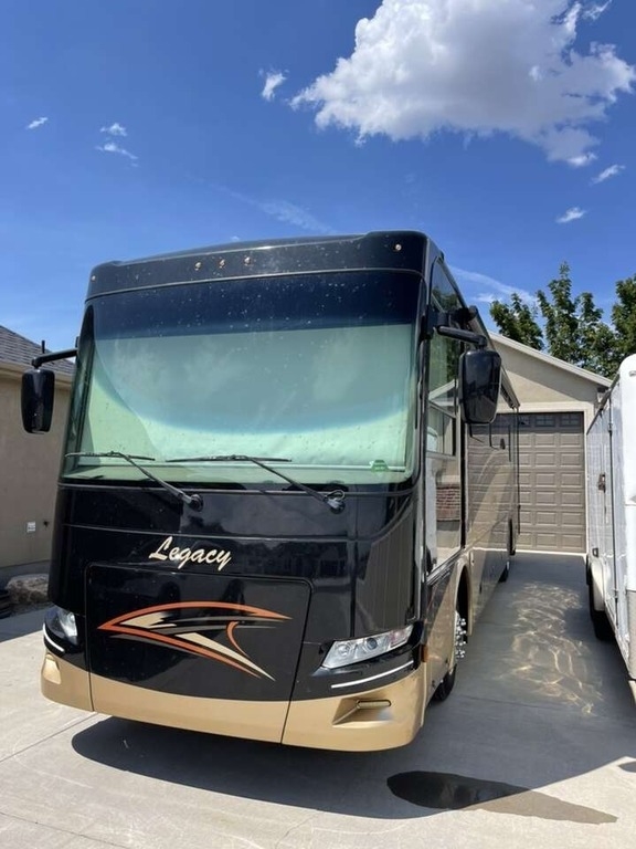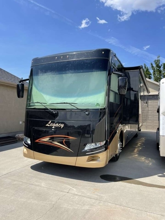 This 2018 Forest River Legacy SR 340 360RB Class A Motorhome is 39.83 feet long and comes equipped with two slide outs, a power patio awning, two air conditioning units, and can sleep seven people comfortably. This coach is powered by a 340 HP 6.7L Cummins diesel engine and sits on a Freightliner XC-Series chassis.