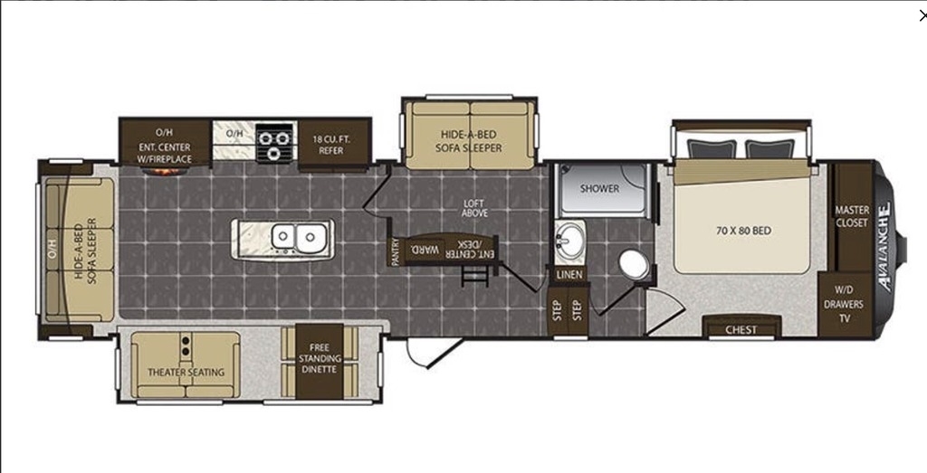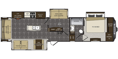This Keystone has a over all length of 39.83 Feet and Comes Equipped with 4 Slide Outs, 1 Auto Awning, 2 AC Units, and Plenty of Room to Sleep 8.