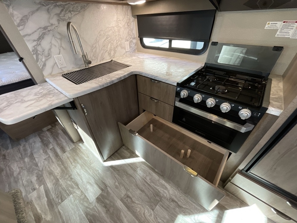 equipped with 1 power retractable slide-out, 1 power retractable awning, 1 A/C