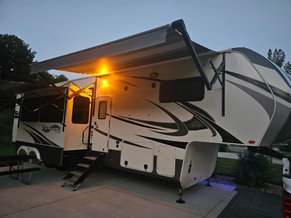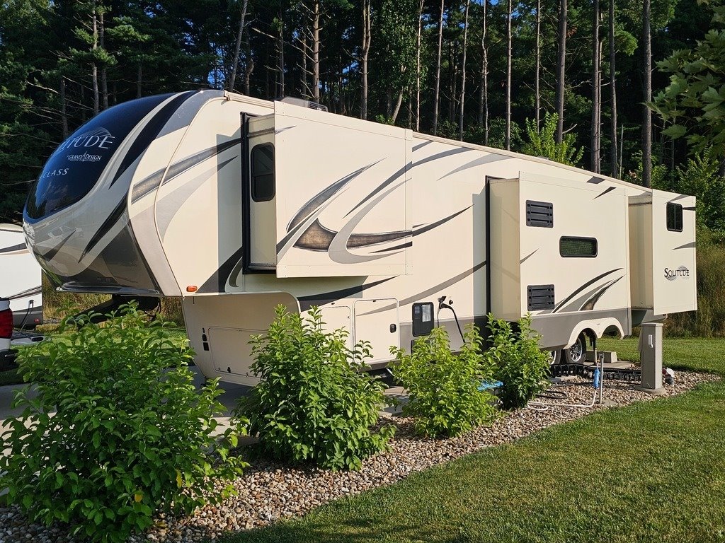“This 2019 Grand Design Solitude S-Class 3740BH is in excellent condition and has been barn kept when not in use, preserving both the exterior and interior beautifully. The coach is clean, well-maintained, and fully equipped with the quality and comfort Grand Design is known for. The spacious bunkhouse layout, residential-style finishes, and generous storage make it perfect for families or extended stays. All systems and appliances operate exactly as they should. A well-cared-for, premium fifth wheel that’s road-ready.”