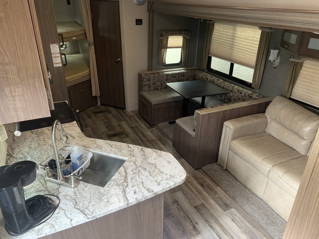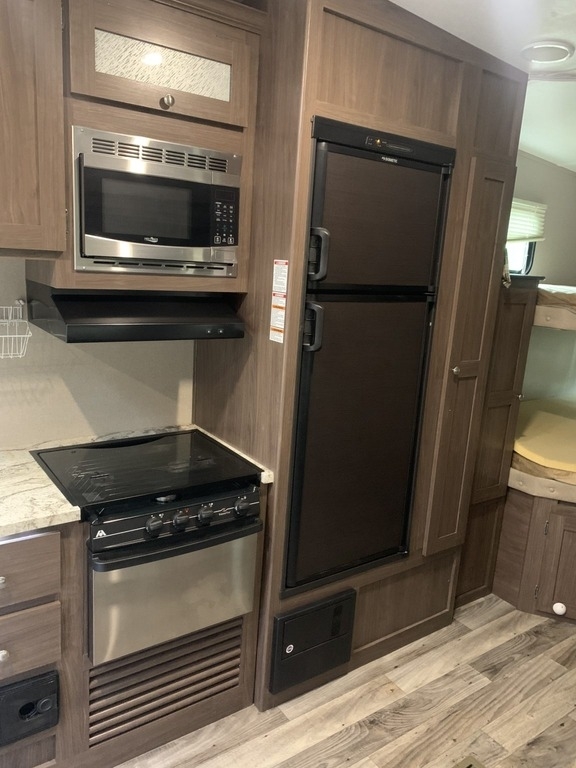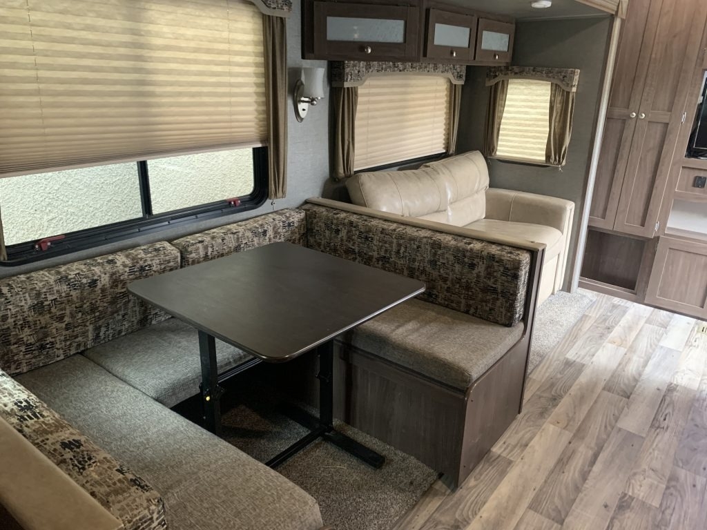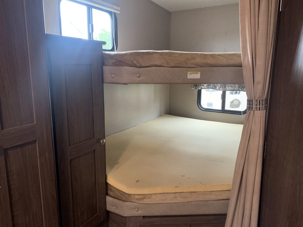 This Keystone has a Overall Length of 32.33 ft and comes equipped with 1 Slide Out, 1 Power Awning, 1 and ½ Bath with Room to Sleep 10.